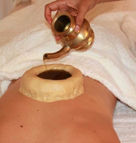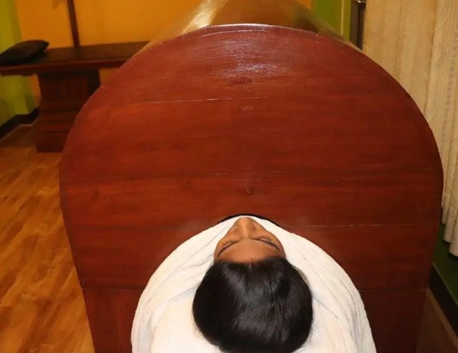 Swedana involves inducing sweat through steam or herbal steam baths. This treatment opens the body’s channels, enhances circulation, and relieves pain and stiffness.
