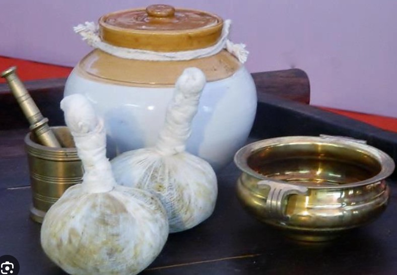 Kizhi involves the application of heated cloth bags filled with herbal powders or rice to relieve pain, inflammation, and stiffness.